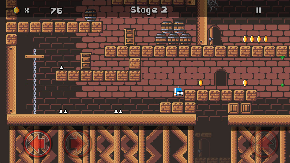 2、每个关卡开始时,都会有简短的剧情介绍,了解剧情后,利用左下角的移动按钮进行探索,右下角的跳跃按钮帮助你跨越障碍。
