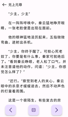 在阅读界面,通过设置按钮调整字体大小、背景颜色和亮度,以适应不同的阅读环境。阅读时,点击屏幕的右侧可以翻页,左侧则可以返回上一章。
