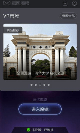暴风魔镜是一款VR辅助软件,这是一款与暴风墨镜设备匹配的APP,平台有着震撼的VR视觉效果,当你疲惫,你可以在VR市场上下下载全新的VR体验,有现场的,游戏的,图片的。为您带来超IMAX感受的大屏体验。头控交互与全景游戏资源,让您真正身临其境。