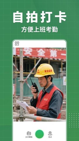 1、拍摄记录:使用相机功能,直接拍摄需要记录的画面,实时生成带水印的图片。
