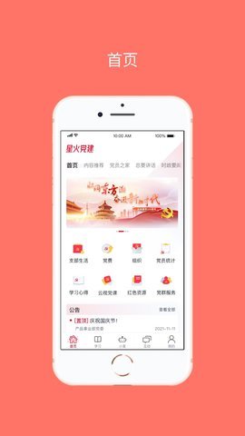 星火党建app是一个专为党员和党组织设计的高效管理工具,能让用户随时随地获取最新的党建资讯,还能通过多种功能提升党务管理的效率。无论是发布通知公告,还是进行在线学习,星火党建都能提供便捷的服务,帮助党员更好地参与到党务活动中。这个应用的出现,标志着党建工作的现代化和信息化,为广大党员带来了全新的体验。