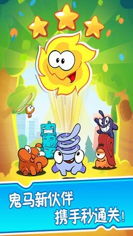 3、与第一部割绳子游戏相比割绳子2增加了有各具神色的小怪兽,增加了5个小伙伴,玩家可以通过自己的努力解锁各种高级道具的限制。
