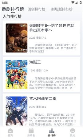 3、动漫排行榜:通过多种不同的动漫排行榜,轻松发现新的热门作品,拓宽自己的观看范围。