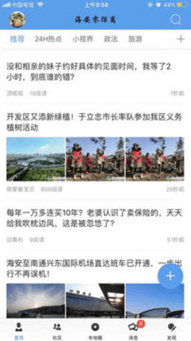 海安零距离APP是一款专为江苏海安地区设计的社区门户应用。它提供了吃喝玩乐、家居装修、房产楼市、招聘求职等热门板块,能够满足用户多元化需求。应用界面设计简单清晰,易于操作,在使用过程中有很好的流畅感和舒适度。