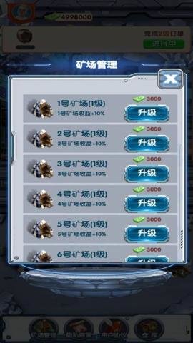 2、你将尝试着管理一座矿场,操作简单流畅,你是能够在这里去不断的升级自己的矿业的。