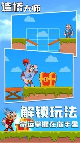 造桥大师是广州万维在线科技有限公司打造的一款集收集、休闲益智、创新品类、卡通游戏于一体的游戏。在玩家需要选择不同的材料,有其他的等等,通过引用物理知识来建立一座座牢固的桥梁。游戏中有超多的关卡内容等着玩家来尝试,玩家还可以在游戏里建筑属于自己的桥梁,让自己的创造力得到充分的发挥。