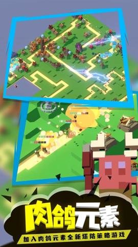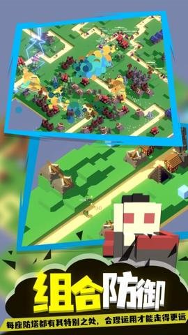 2、游戏中包含了解锁、建造、升级、扩展、防御等经典塔防玩法,建筑分为很多种类,指定对应的战术,采用卡通版的画面刻画呈现。