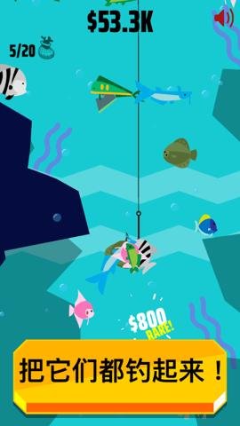 2、游戏的画风可爱,运气好的话,玩家还可以钓起宝箱,获得更多的奖励。