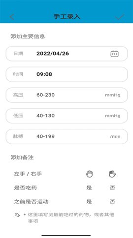 1、支持一键手动上传血压数据,随时记录和更新自己的健康信息,保持数据的准确性。