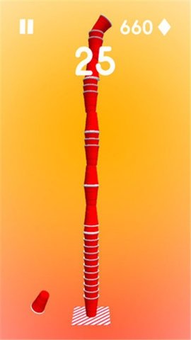 3、相当休闲的触屏玩法,让玩家把握好放下杯子的时机,不断地让自己的杯子向着更高的地方堆叠。