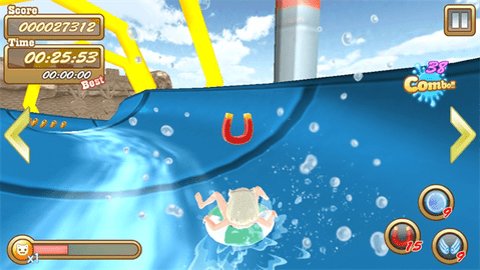 2、游戏设置了多种滑水道,玩家可以选择不同的赛道进行挑战,每条赛道都有独特的设计和障碍,考验玩家的反应能力。
