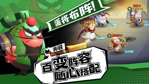 在《蛋壳大作战》中,玩家将会体验到一种全新的卡牌策略游戏玩法。游戏的主角是可爱的蛋蛋人,所有的武将角色都以独特的蛋蛋形象呈现,给人一种耳目一新的感觉。你可以根据自己的喜好搭配不同的阵容,挑战各种关卡副本,完成精彩的闯关任务。历史名将与神话英雄们纷纷化身为Q萌的蛋蛋人,带你重回那些热血沸腾的历史时代。诸葛亮、大圣、关羽等隐藏角色也在此焕新归来,丰富了游戏的内容与玩法。通过合理的阵容搭配和英雄养成,玩家可以在战斗中体验到更高的策略乐趣,释放华丽技能的瞬间也能带来畅快的操作体验。游戏的多种玩法调研了玩家的喜好,确保每位玩家都能找到属于自己的乐趣。