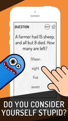 愚蠢的测试是一款充满趣味和挑战的脑筋急转弯游戏,旨在激发玩家的思维潜能。游戏的题目设计简单却富有深意,玩家需要认真理解每个问题的含义,才能找到正确的答案。题目被分为多种类型,玩家可以根据自己的兴趣选择不同的题材进行挑战。每一次的答题不仅仅是为了获得分数,更是一场智力的比拼和思维的碰撞。适合在聚会、休闲时刻与朋友们一起分享,无论是欢声笑语还是深思熟虑,都会让人感受到游戏的乐趣。