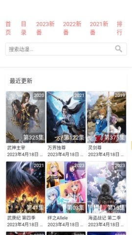 2、在首页的搜索框中输入想要观看的动漫名称,点击搜索,相关的动漫列表将会迅速出现。