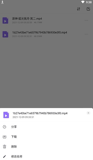 上传完成后,文件将显示在软件主页。点击文件右侧的菜单按钮,即可进行下载、分享、移动等操作。