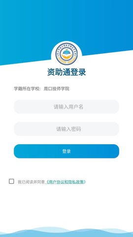 资助通技工版app是一款由河南汉王智远科技有限公司推出的周口市技工院校资助监管系统。新用户使用时,需要输入自己的学校名称,点击进入,并输入自己的用户名和密码进行登录。可以让符合扶贫条件的技工在线填写自己的信息并申请补助。