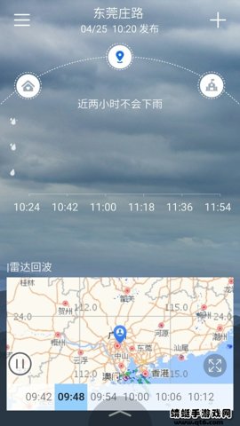 3、查看每个时间点的雷达回波图和天气数据,帮助用户直观了解天气状况,做出合理判断。