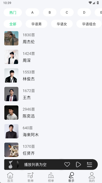 3、歌单列表支持手动调整歌曲的排列顺序,也可以一次性清空全部内容。