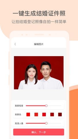 1、这款软件让用户在家就能轻松拍摄结婚证件照,省去了往返照相馆的时间和麻烦。