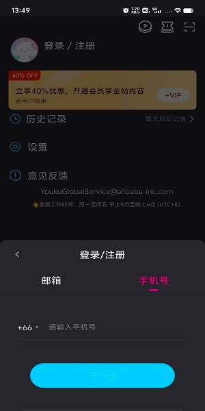 输入你的手机号或邮箱,点击【下一步】;如果是手机号,请注意选择国家区号,中国大陆用户请选择 +86;