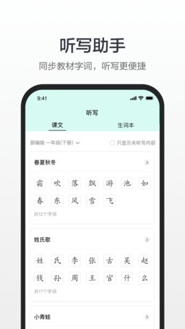 听写练习:提供K12课内字词听写功能,帮助学生巩固课堂所学内容,提升书写能力。