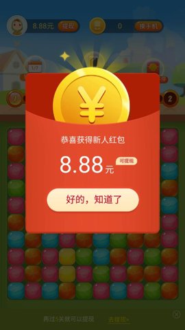 游戏不仅仅是消除糖果的乐趣,成功通关后可以获得红包奖励,提现简单,极大提升了游戏的吸引力,让玩家在享受游戏的同时也能获得实际的经济回报。