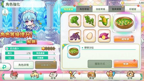 3、角色的养成不仅仅是提升等级,玩家还需通过制作料理来增强角色的能力,每道料理需要特定素材,增加了游戏的挑战性。