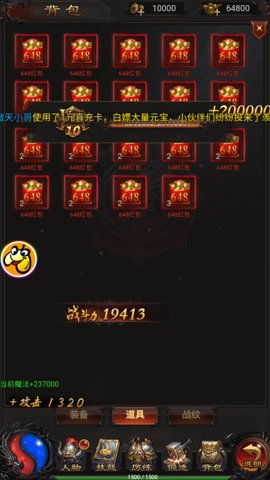 3、地宫打宝玩法让玩家在探索中获得大量极品装备,感受无限掉落的惊喜与激情,争夺天下第一的荣誉。