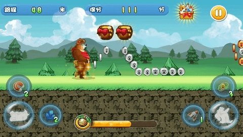 夺宝熊兵是一款休闲创造与搞笑元素相结合的游戏,带给玩家一种独特的酷跑横版体验。游戏的核心在于控制可爱的狗熊角色在多变的森林环境中奔跑,玩家的目标是收集散落的金宝,体验刺激与乐趣并存的冒险旅程。每一关都充满挑战,玩家不仅需要灵活应对各种障碍,还能享受收集道具带来的快感,感受节奏感十足的游戏过程。
