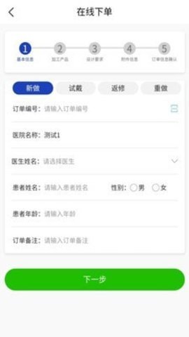 2、选择“在线点单”功能,进入后可以输入患者信息并提交订单,系统会自动记录。