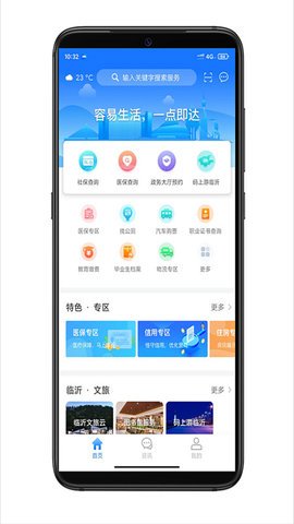 1、下载并安装爱山东容沂办应用,打开软件后,用户将看到清晰的主界面,包含各类服务模块。