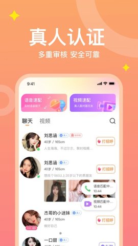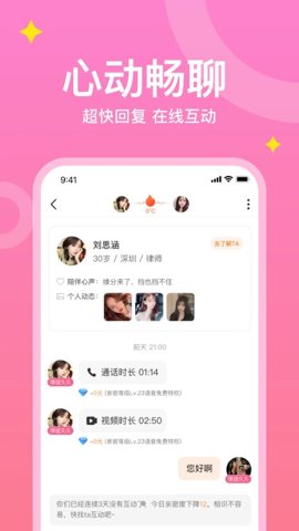 2、实时聊天功能,随时与匹配的对象进行文字、语音或视频聊天,增加互动的趣味性。
