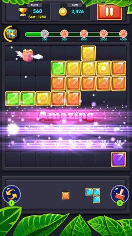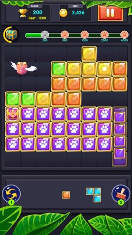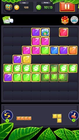 在游戏中,玩家的目标是通过拖动方块,填满水平或垂直的行。一旦一行或一列被填满,方块就会消失,玩家得分增加。游戏的操作非常直观,玩家只需用手指拖动方块到合适的位置,轻松完成拼图。随着关卡的推进,玩家会遇到越来越复杂的布局,需要更高的策略和思维能力来应对。