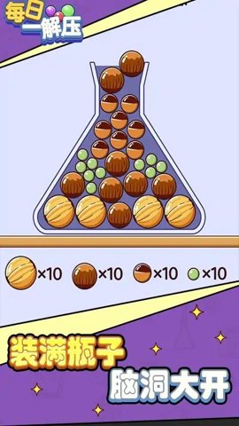 在《每日一解压》中,玩家首先需要仔细观察瓶子的形状。每个瓶子都有其独特的容纳空间,玩家需要合理利用这些空间,确保水果干果能够完美地放入瓶中。通过不断的尝试,玩家可以找到最优的放置顺序,提升游戏效率。