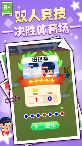 在这个充满活力的“拼到底”小游戏中,玩家可以尽情享受各种体育竞技的乐趣。游戏集合了多种热门的休闲体育项目,支持单人和双人模式,让你可以选择与电脑对战,或者叫上好友一起竞技。无论是篮球、田径还是跳水,游戏都能带给你身临其境的体验。每一个项目都有独特的规则和操作方式,玩家可以通过不断的练习提升自己的技能,享受竞技的快感。游戏的界面友好,操作简单,即使是新手也能快速上手,适合各种年龄段的玩家。让我们一起在这片竞技场上,感受运动的魅力吧!