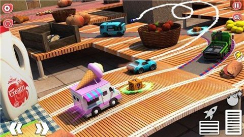 2、每一场比赛都充满了紧张感,玩家需要在复杂的桌面环境中灵活应对各种障碍,挑战自己的反应能力和驾驶技巧。