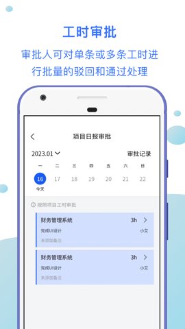 2、审批人可对工时记录进行单条或多条的批量审批,简化了审批流程,提高工作效率。