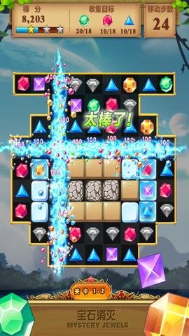 1、游戏中的宝石种类非常丰富,视觉和听觉效果都让玩家们感到极佳。