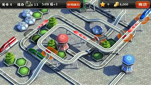 2、在玩家需要指挥火车在铁道上安全的运行,配置火车的轨道让多辆小火车在交错的轨道上安全的运行。