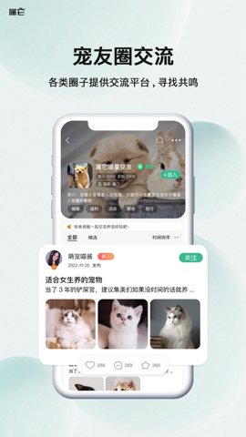 2、加入宠友圈,与其他宠物爱好者互动,分享养宠经验和宠物趣事。