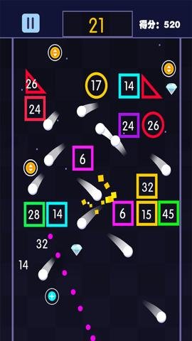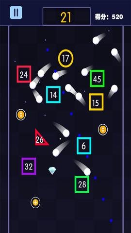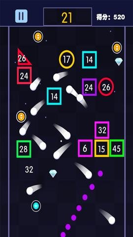 2、玩家需要发射弹球去撞击方块才可以获得更多分数,玩起来也非常容易上瘾。