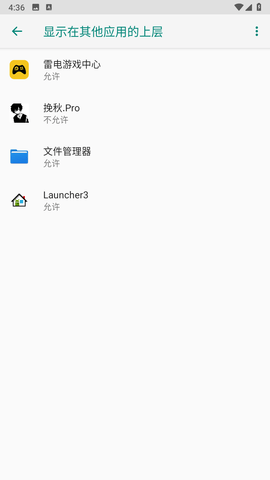 1、启动应用后进入权限管理界面,开启悬浮窗显示授权。