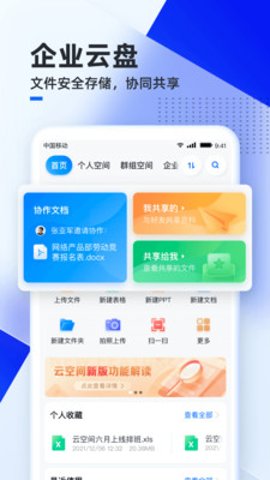 1、支持企业云盘功能,安全存储和管理重要文件,随时随地访问。