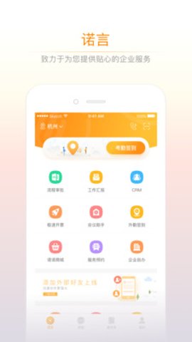 3、诺言提供全面的考勤打卡和流程审批功能,帮助企业高效管理员工考勤及工作流程,确保每项工作的顺利进行。