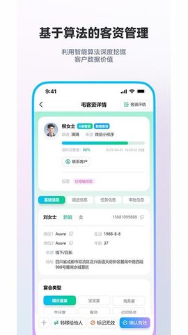 2、提供了专门的客户资源管理板块,可以录入和查询所有潜在或已成交客户的基本资料与跟进状态。