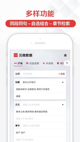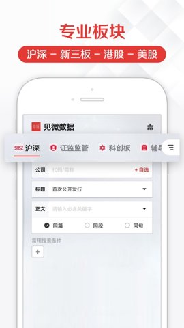 见微数据app是一款专注于信息服务的平台,旨在为金融投资机构、券商投行、律所、PEVC及新闻媒体等专业人士提供便捷的检索工具。它汇集了丰富的信息内容和特色功能,能够帮助用户快速获取所需的市场资讯和数据分析。无论是想要了解最新的公告,还是进行深入的行业分析,见微数据都能为您提供高效的信息服务,助力您的决策过程。欢迎下载体验,开启您的专业信息之旅。