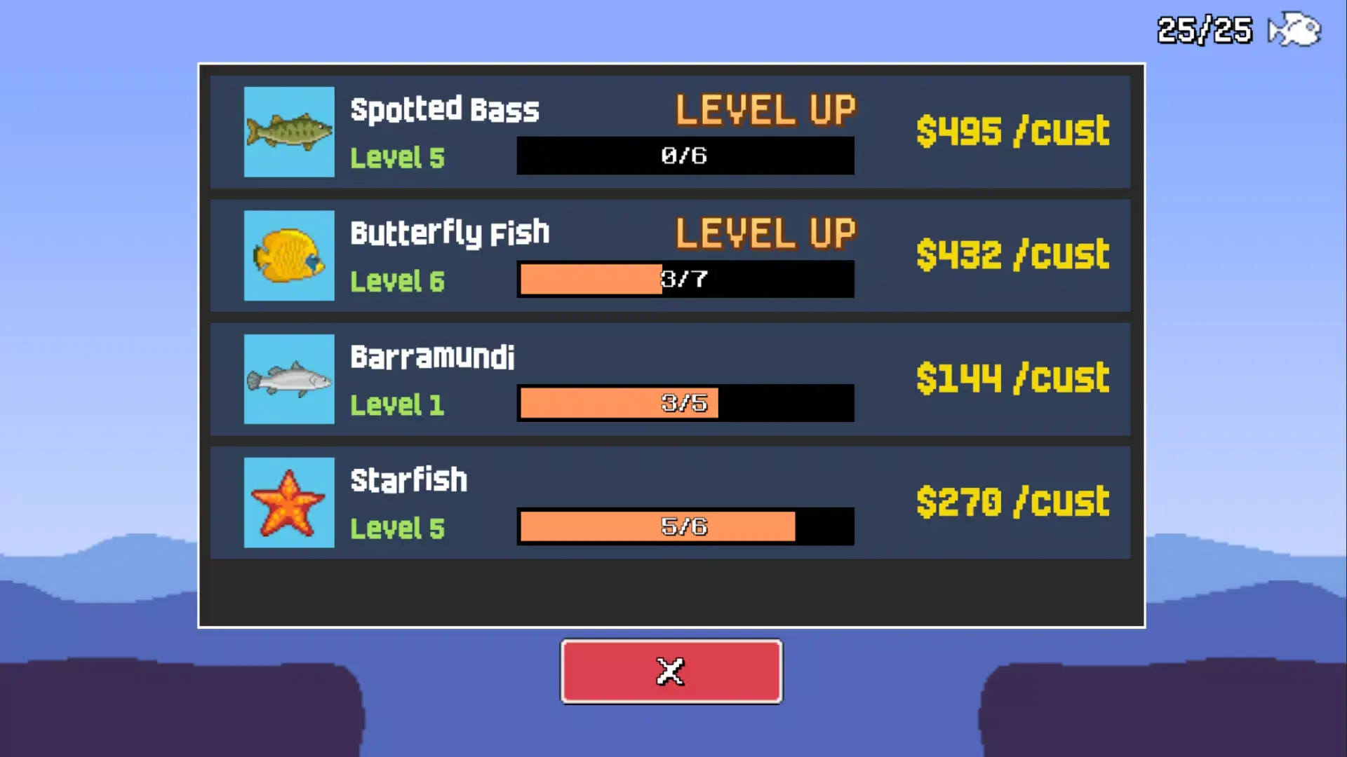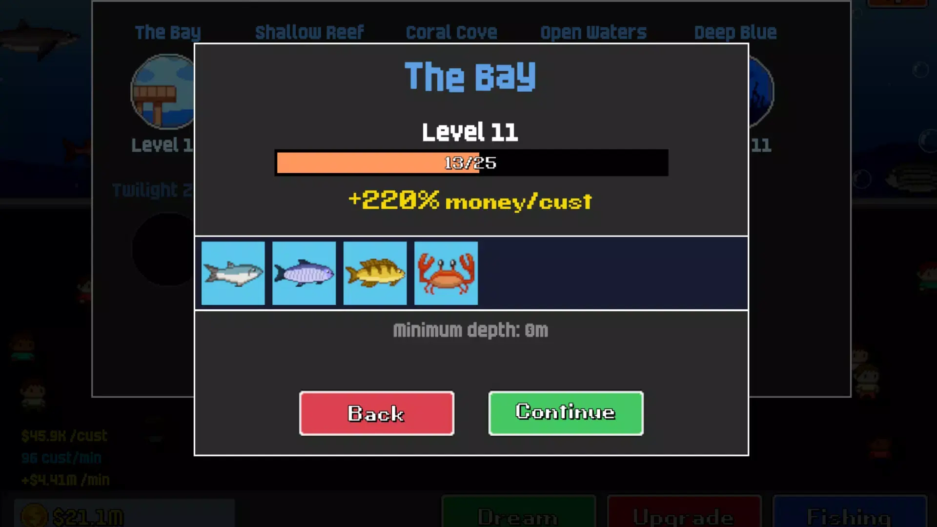 3、工具升级系统让游戏的玩法更加多样化,通过改进捕捉工具来挑战更高的目标,捕获更稀有的鱼种。