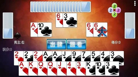 在确定花色后,进入五主过河的阶段,玩家需要根据手中的牌来决定出牌的顺序。游戏中,王牌和2牌是常主,玩家需要灵活运用这些牌来打出最佳的组合。每个级别的牌也有其对应的常主,玩家需要熟悉这些规则,以便在出牌时能够做出更好的决策。