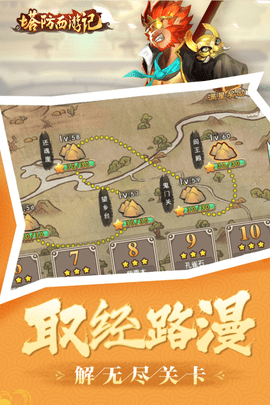 1、玩家将扮演西天取经的主人公,采用Q萌的造型设计,在贴合西游记主题的情况下还有着不少有趣的原创剧情,为玩家提供精美的游戏画面。