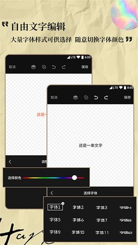 2、支持对文字的颜色和图案的背景色进行自由调整,方便搭配出理想的视觉效果。
